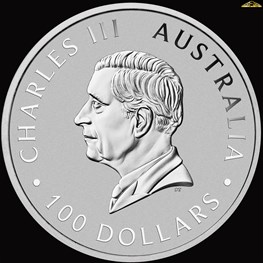 DESIGN The coin’s iconic design portrays a bounding kangaroo surrounded by stylised rays of bursting sunlight. Inscriptions on a wavy-lined border include ‘AUSTRALIAN KANGAROO’ and the coin’s weight, purity, and yeardate, together with The Perth Mint’s ‘P’ mintmark. The coin’s obverse depicts the Dan Thorne effigy of His Majesty King Charles III, and the monetary denomination.