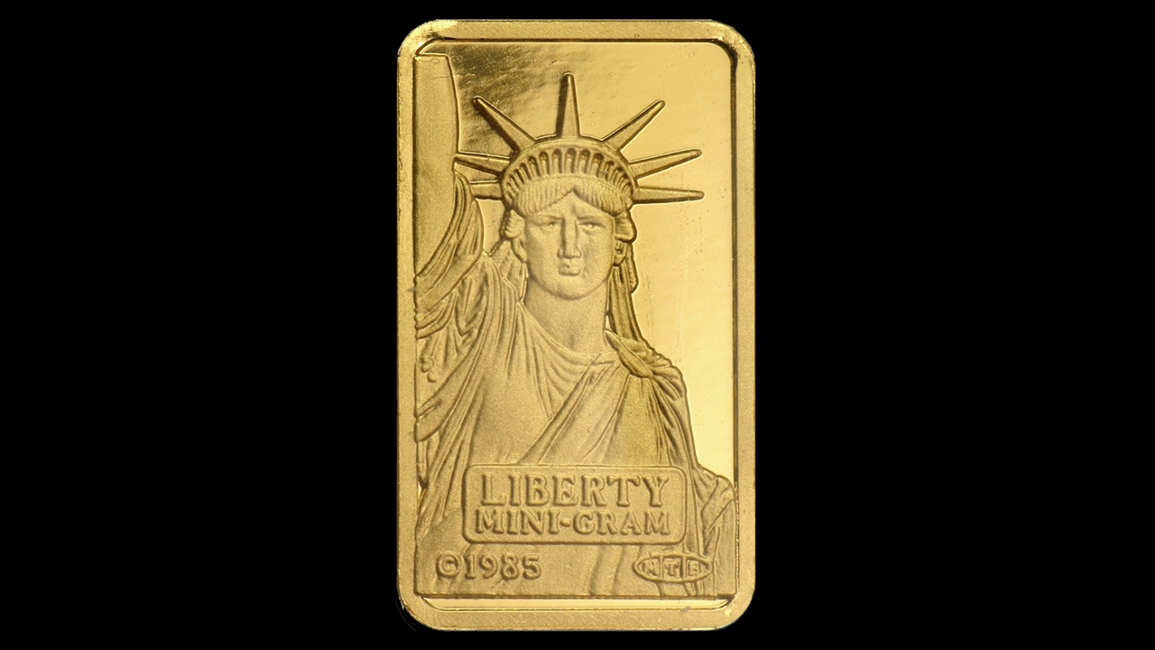Individual Lady Liberty Gold bars are presented in a sealed protective assay package